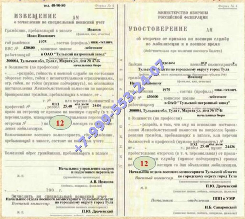 Наша компания предлагает купить в Ивантеевке удостоверение об отсрочке на военную службу на максимально выгодных условиях для клиента. Документы легальные, использованы бланки государственного образца.